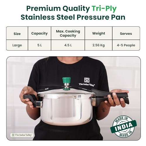 The Indus Valley Triply Stainless Steel Outer Lid Pressure Pan 5 Litres | Also Use As Deep Fry Pan | Induction friendly | ISI-Certified, 3-Layer…