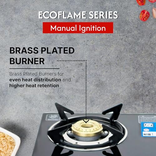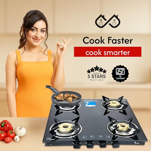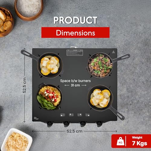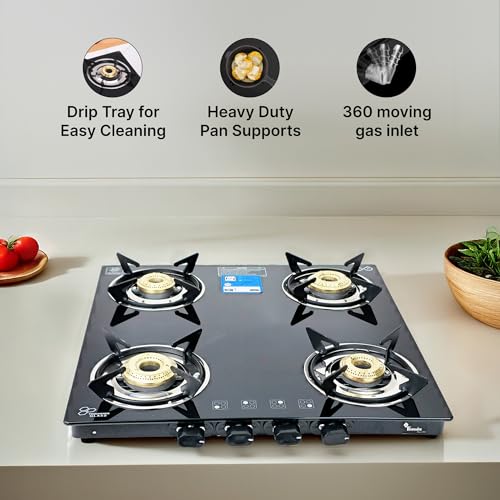 Thermador EcoFlame 4 Burner Gas Stove Glass Top Manual Ignition | Brass Plated Burners | Four Burner Gas Stove | LPG | ISI Certified | 1 Yr…