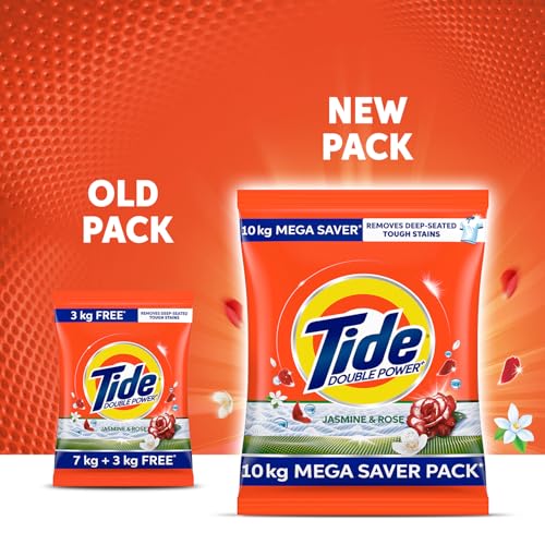 Tide Plus Detergent Washing Powder – 10kg Mega Saver Pack | Jasmine & Rose Fragrance | Removes deep-seated Oil, Gravy, Tea Stains | World’s No. 1…