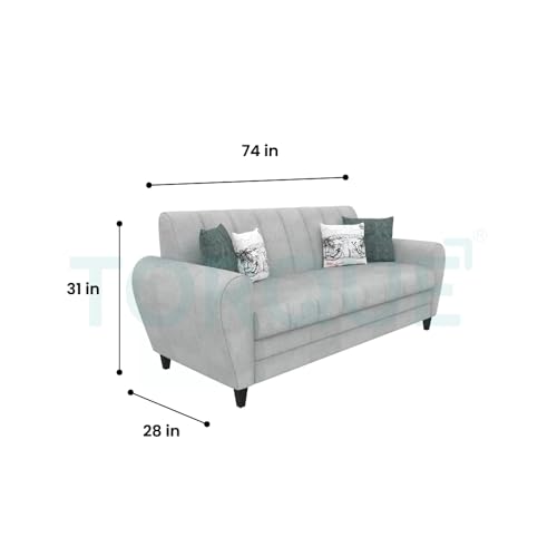 Torque – Bali Premium Fabric 3 Seater Sofa for Living Room (Grey) | Modern 3 Seater Sofa Set Couch with 2 Cushions for Bedroom Hall Festival Gift |…
