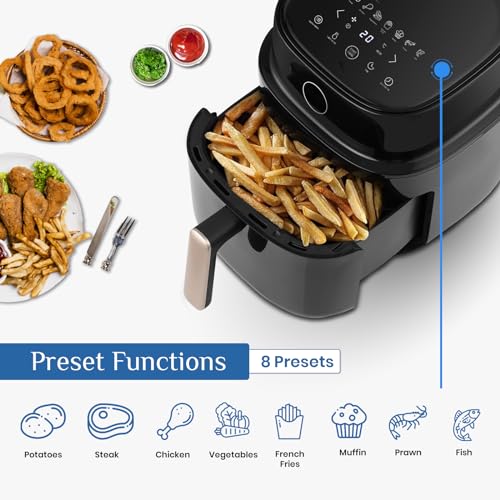 - ✅Digital Panel with 8 Presets Functions – truTRTL Digital Air fryer comes with digital touch panel and 8 preset (one touch) functions with easy to adjust time & temperature