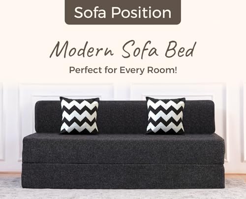 - In the Package: The package includes 1 Uberlyfe Dark Grey Sofa cum Bed along with 2 pillow covers and 2 fillers, all featuring a trendy zigzag pattern to elevate your home decor.