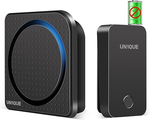 UN1QUE Wireless Door Bell for Home, Self-Powered Battery Free Cordless Calling Bell-1000ft Range with 38 Chimes,LED Light,4 Levels Volume (UB500…