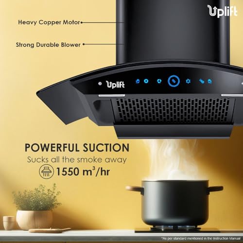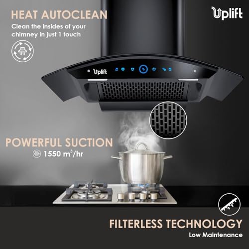 - Uplift’s Filterless Kitchen Chimney has a powerful suction capacity to keep your kitchen smoke-free and refreshing. It is low on maintenance, less noisy, and energy efficient. No smoke, no hassle, just pure cooking bliss.
