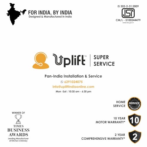 - Complete Peace of Mind: This Uplift Chimney is ISI Certified (CML No. : 5100244479) ensuring superior quality and safety. For Installation and Service Support, contact Uplift Customer Care on call or WhatsApp at +916291024075. You can also email us at info@upliftindiaonline.com. Experience complete convenience with the paid installation service for this kitchen chimney.