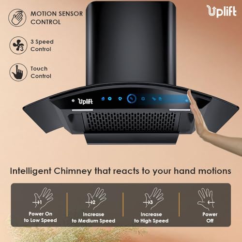 Uplift 75 cm 1550 m3/hr Filterless Autoclean Silent Kitchen Chimney with 10 Yr Warranty (Platina 75, Motion Sensor & Touch Control, Curved Glass,…
