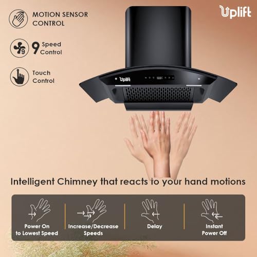 Uplift 75 cm BLDC 1550 m3/hr Filterless Autoclean Silent Kitchen Chimney with 10 Yr Warranty (Paradise 75, Motion Sensor & Touch Control, 9 Speed,…