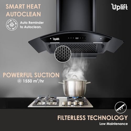 - Uplift’s Filterless BLDC Kitchen Chimney has a powerful suction capacity to keep your kitchen smoke-free and refreshing. It is low on maintenance, less noisy, and energy efficient. No smoke, no hassle, just pure cooking bliss.