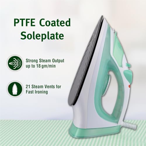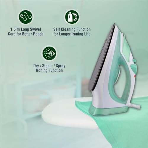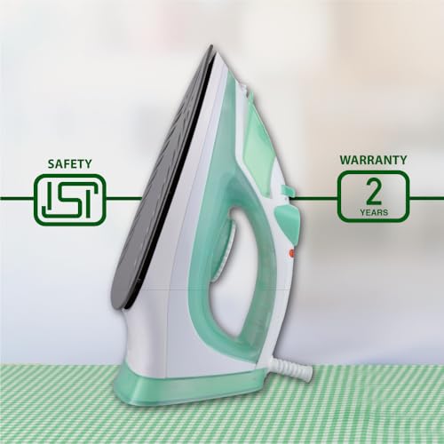 Usha SI 3816 Steam Iron 1600 W with Easy-Glide Non-Stick Soleplate, Powerful Steam Output, 280 mL Water Tank (Green & White)