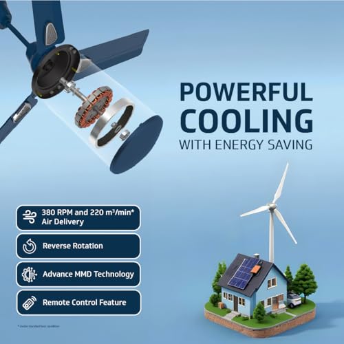 - ENERGY-EFFICIENT: This 5-star rated BLDC fan consumes only 35W of power and features advanced MMD technology, providing up to 53% savings on electricity.