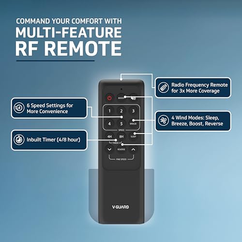 - REMOTE CONTROL OPERATION: Effortlessly control the Windle Deco BLDC fan with the included multi-feature RF remote. Adjust speed, set a 4/8-hour timer, and more with ease.