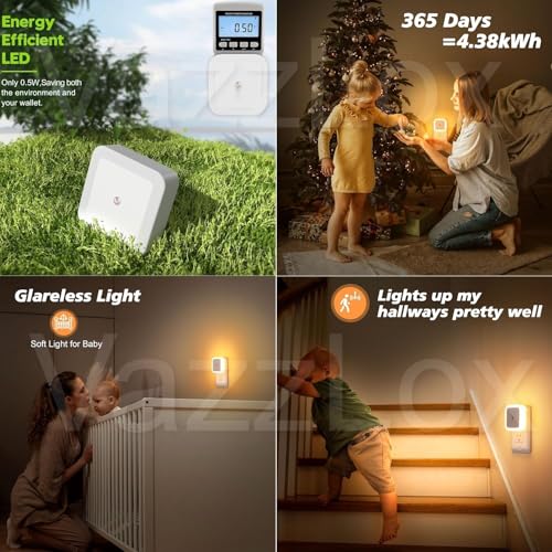 VazzLox Night Lamp for Bedroom 4PCS Smart Sensor Automatic ON/OFF Dim LED Light Energy Saving 0.5W Night Light Long Life Plug in Bed Lamps for…