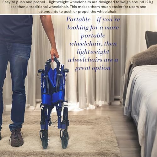 - MATERIAL: This compact lightweight wheelchair for adults is made from a super-strong ultra-lightweight frame features a quick-release hinge to fold down for easy storage and transport. Due to its lightweight nature, this chair is ideal to travel and can be easily checked on an airplane and loaded aboard in the cargo compartment