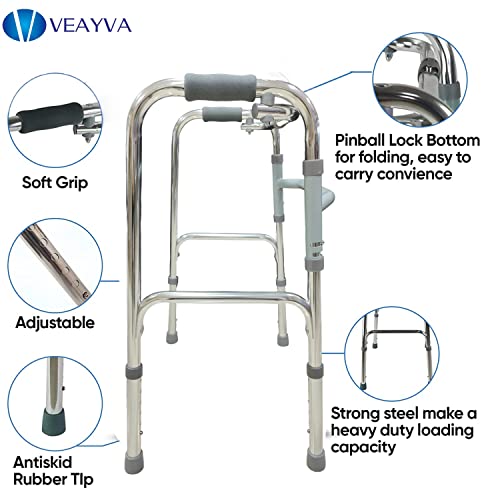 VEAYVA IMPORTED FOLDING ADULT WALKER HEIGHT ADJUSTABLE ALLUMINIUM FRAME | FOLDING WALKER FOR ADULTS | ELDERLY PERSONS | PATIENTS | SENIOR CITIZENS…