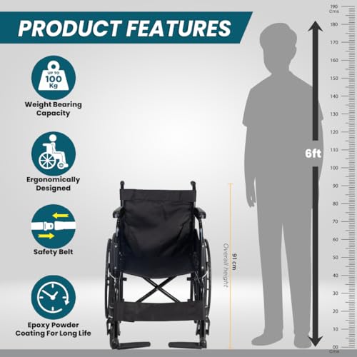 - FOLDABLE: The wheelchair for patients is foldable and takes just 3 seconds to fold / unfold; which helps in easy storage and transportation. The folding mechanism provides the best possible experience to the user, making it a convenient foldable wheel chair.