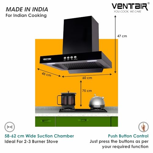 - Push Button Control: This Ventair kitchen chimney is very quick and easy to operate. This chimney comes with a push button control panel. You can use the multiple speed settings to conveniently adjust the chimney power as per your cooking style.