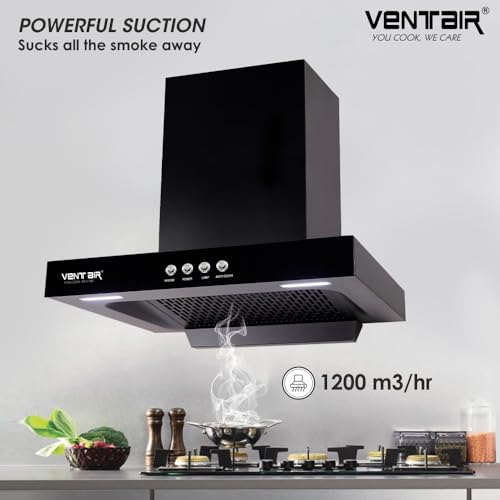 - Powerful Suction: Ventair Chimney Fawn come with powerful maximum suction capacity of 1200 m3/hr. So it can effectively draw-in smoke and fumes from your kitchen. It has a wide suction chamber which effectively covers all the area above your burner stove, thus offering you a clean and healthy cooking environment.