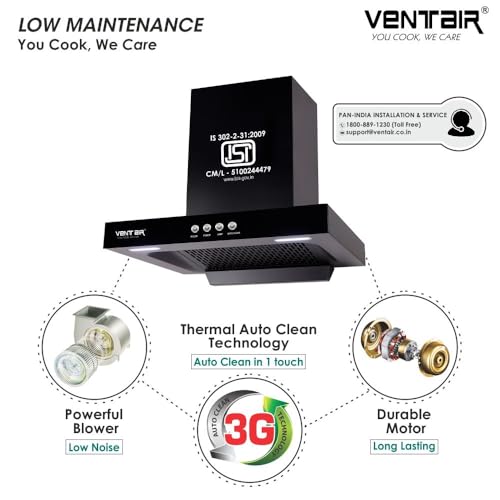 - Auto Clean Technology: With this feature, you can clean your Ventair chimney with just a touch of a button. On pressing the autoclean button, your chimney uses heat to melt and gather all oil and grease particles stuck within and outlets it in your oil collector. The oil collector can then be effortlessly cleaned with a basic wash.