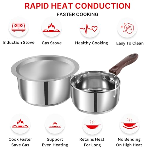 Vinod Stainless Steel Regular Saucepan (0.8 Litre) & Capsule Bottom Tope (1.4 Litre) with Lid(Induction and Gas Stove Friendly), 2 Years Warranty,…