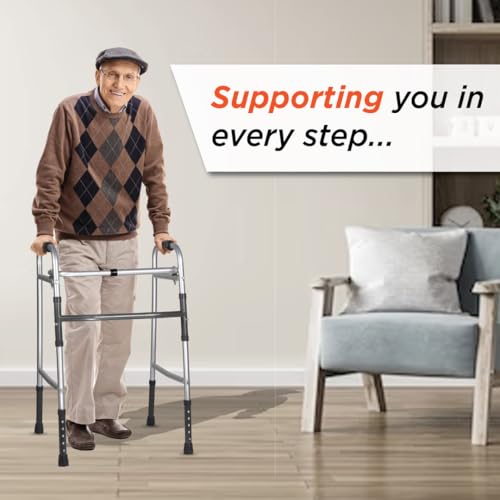 Vissco Dura Lite Foldable Walker for Elderly Physically Challenged Lightweight Height Adjustable Walking Aid with PVC Grip Anti-Slip Rubber Shoes…