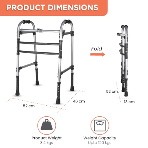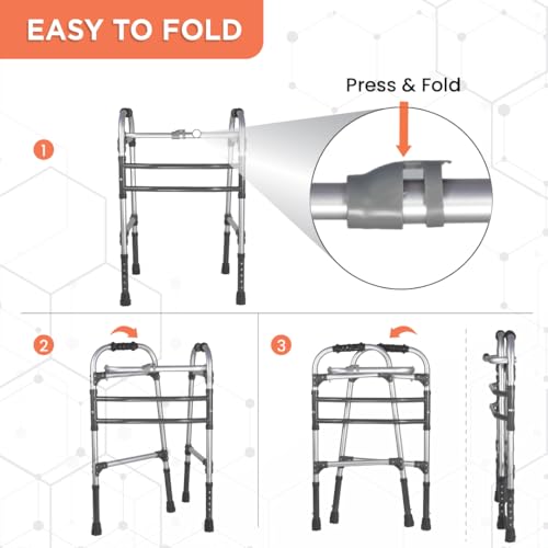 kossto Folding, Portable & Lightweight Height Adjustable Walker Suitable for Seniors, Adult Walker, Disabled Patients…