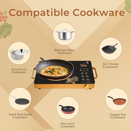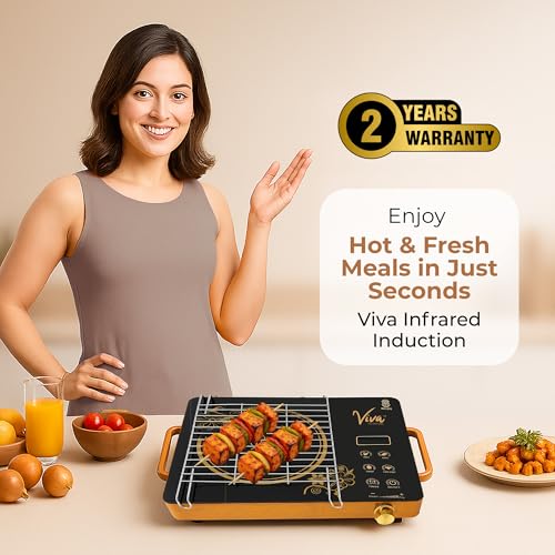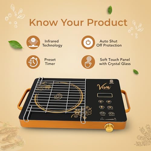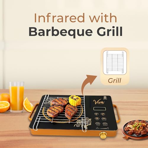 Viva Electric Infrared Induction Cooktop 2200W | Preset Timer | Auto Shut Off Protection | Crystal Glass | Induction with Grill Stand | BBQ, Quick…