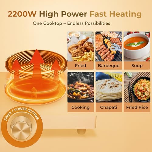 - ★【2200W HIGH POWER OUTPUT】Delivers rapid heating for faster cooking, ideal for quick meals or high-heat searing.