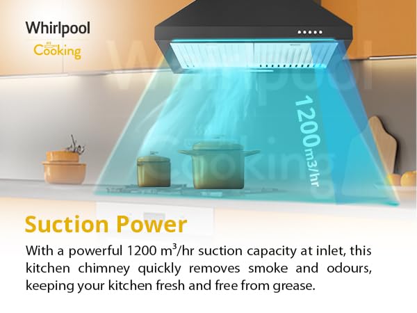 Whirlpool 60cm 1200 m3/hr Baffle Filter Kitchen Chimney with 5 Years WARR on Motor and 1 Year Comprehensive | AKR BF 60 BK HOOD | Black | 3 Speed…
