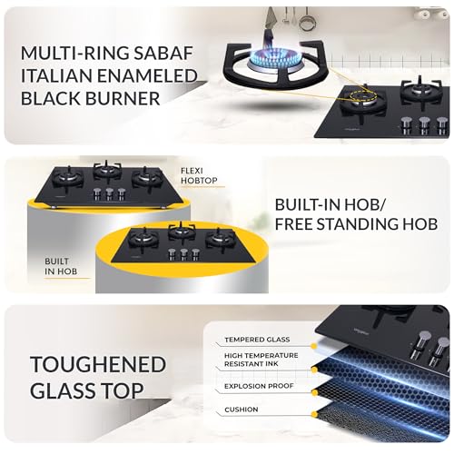 - High Efficiency Multi-ring Burner: The intellicook Multi-flame Sabaf Italian Enameled Black Burner hobs offer high efficiency flame levels best suited for Indian cooking needs with high flame and sim options | Flame Failure Device: No