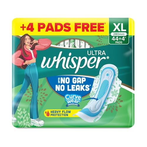 Whisper Ultra Upto No Gap No Leaks Sanitary Pads, 48 XL Pads, For Heavy Flow Protection, With CURVEWEAR™ Technology, Cotton Like Softness,…