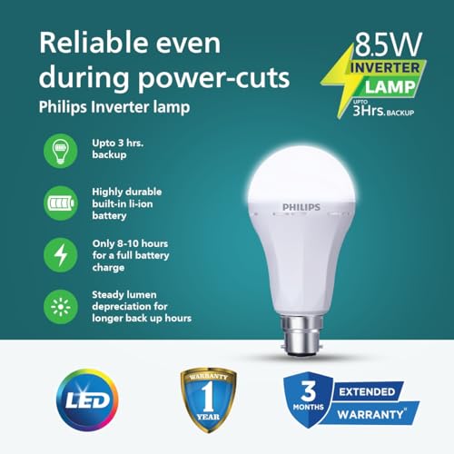 Philips Stellar Bright Rechargeable Emergency Inverter LED Bulb, B22 8.5-Watt-Crystal White(Pack of 4)